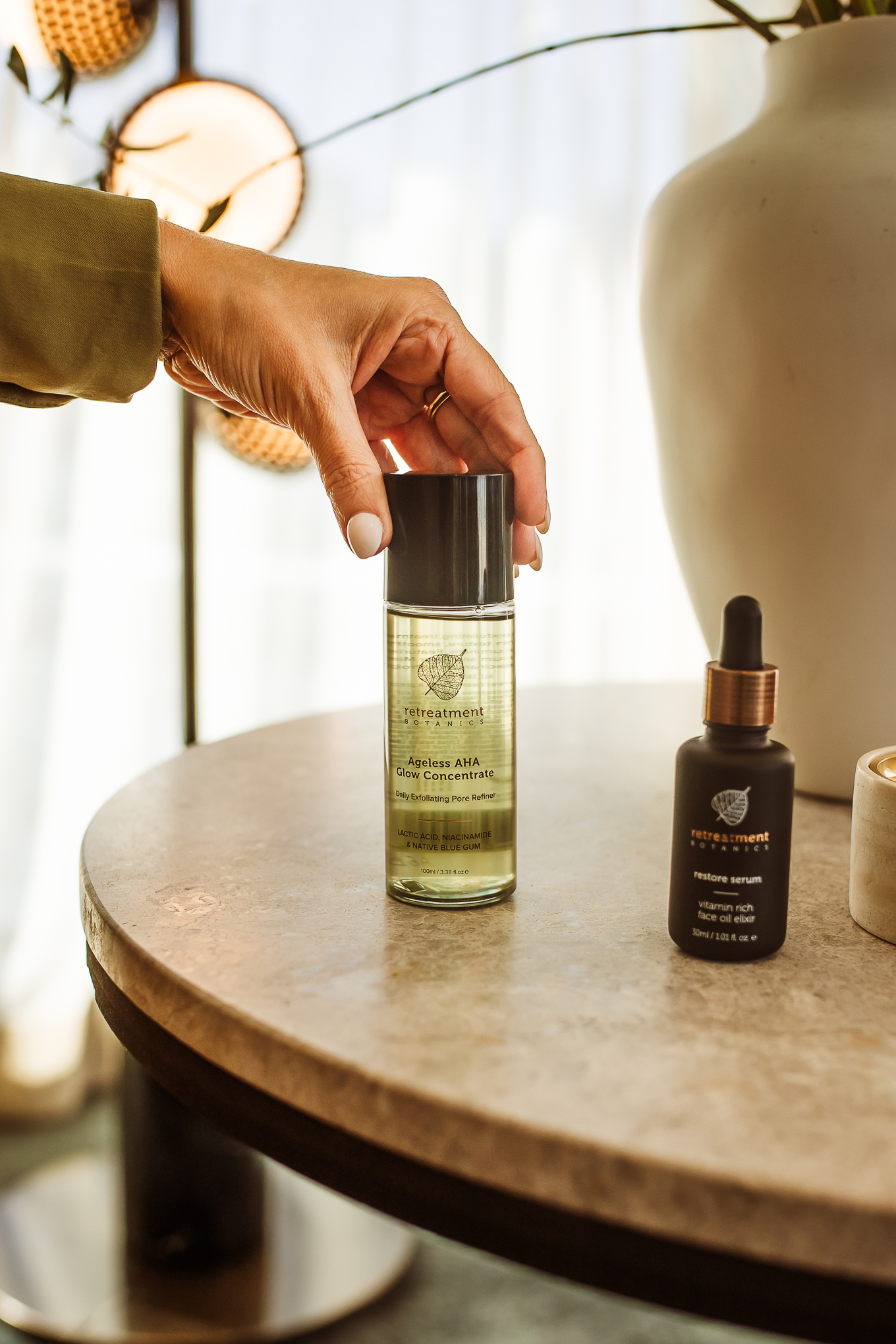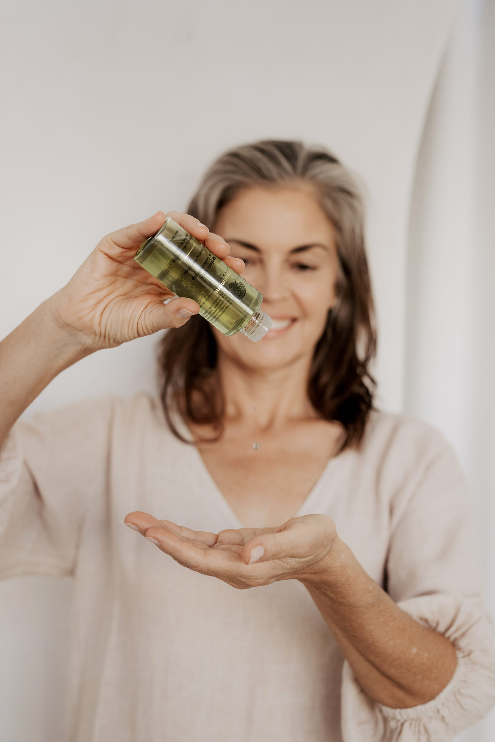 1. Apply 4-5 drops of this ultra-lightweight AHA Concentrate to your hand. By applying without a cotton pad you're avoiding product wastage and saving the environment! Tip: Ageless AHA Glow Concentrate is subtly scented with gentle 100% pure essential oils, designed to uplift your spirit while de-stressing on an emotional and energetic level. Before applying to your face, take a few deep breaths, inhaling the scent while visualising any physical tension melting away. |