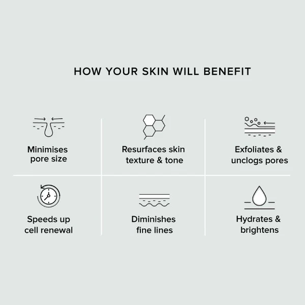 Lactic Acid & Fruit Acids, Tasmanian Blue Gum, Niacinamide (Vit B3), Native River Mint |