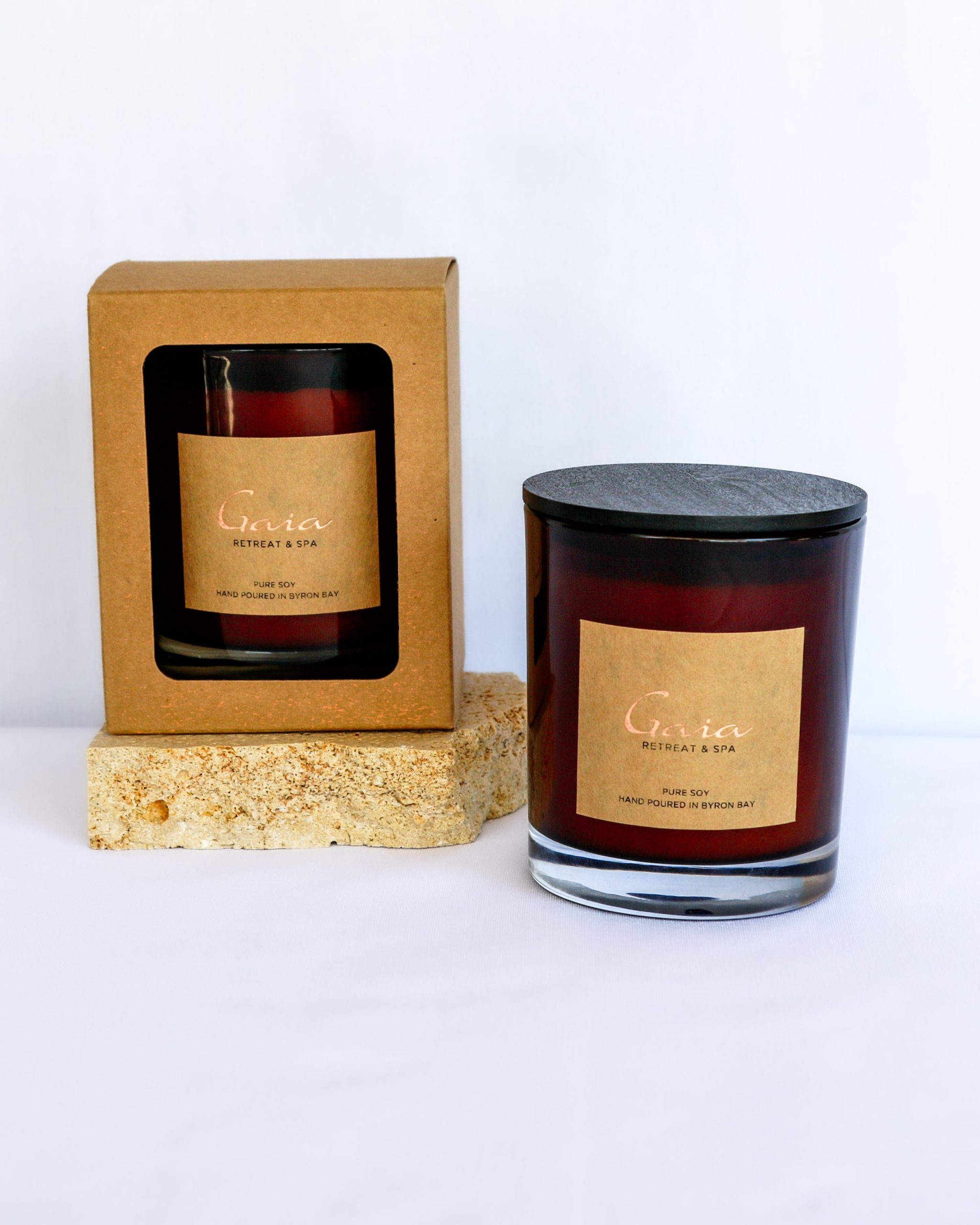 Capturing our signature Gaia Retreat scent for you to enjoy long after you leave. Our custom-scented Gaia soy candles are hand poured in Byron Bay, made using only the purest native botanical and luxurious essential oils. Using a balanced blend of Ylang Ylang, Mandarin & Lemongrass. Assembled with pure cotton wicks this ensures you are burning elements free from nasty and toxic chemicals like petroleum, paraffin and parabens which can have adverse side effects on your health. Our signature Gaia fragrance is to help you feel grounded, clear-minded, and refreshed. Our candles have a 40-hour burn time, allowing you to revisit your Gaia Retreat moments again and again. Formulated with vegan-friendly ingredients this candle is a gift for all.