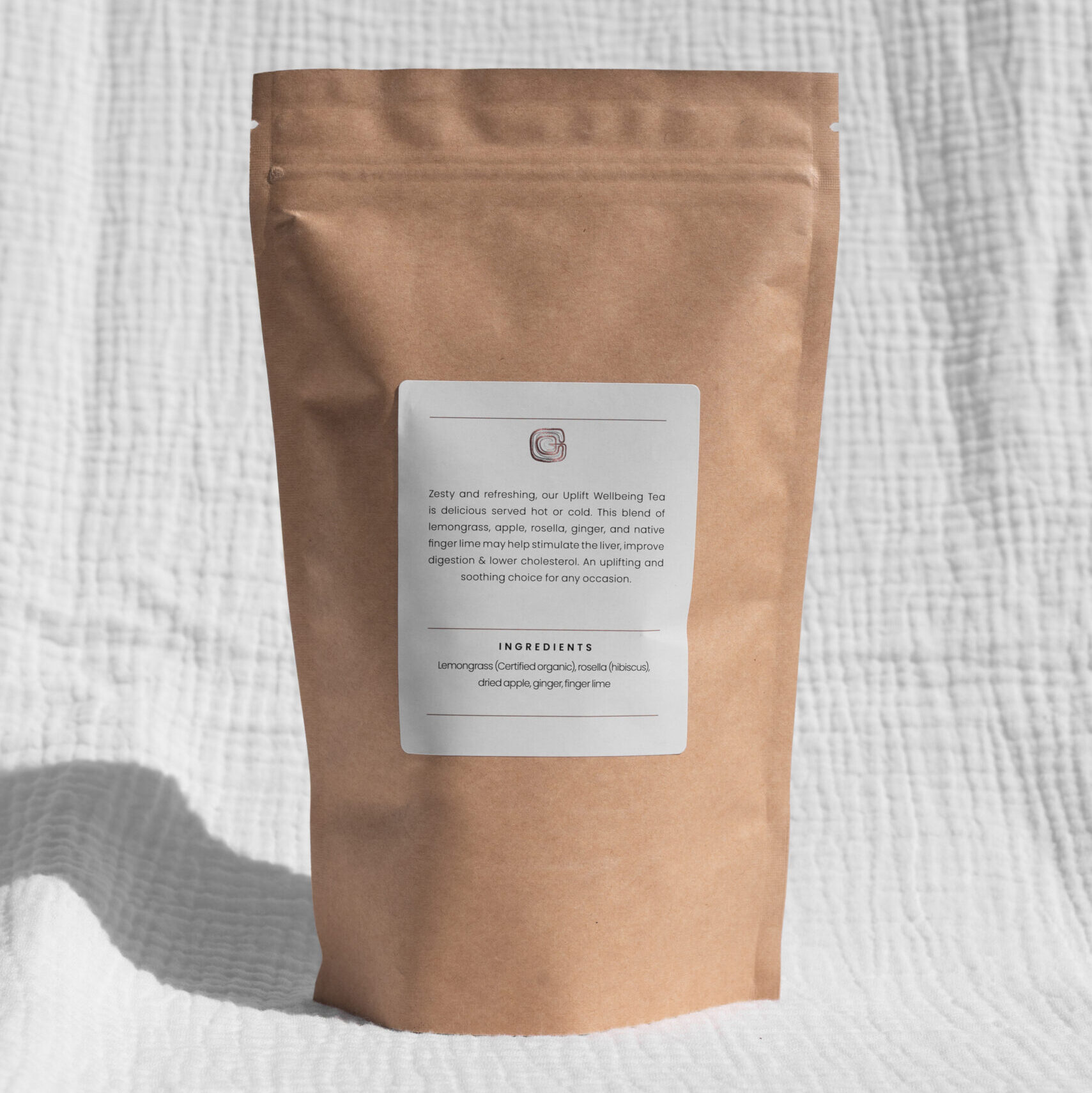 Zesty and refreshing, our Uplift Wellbeing Tea is delicious served hot or cold. This blend of lemongrass, apple, rosella, ginger, and native finger lime may help stimulate the liver, improve digestion & lower cholesterol. An uplifting and soothing choice for any occasion.