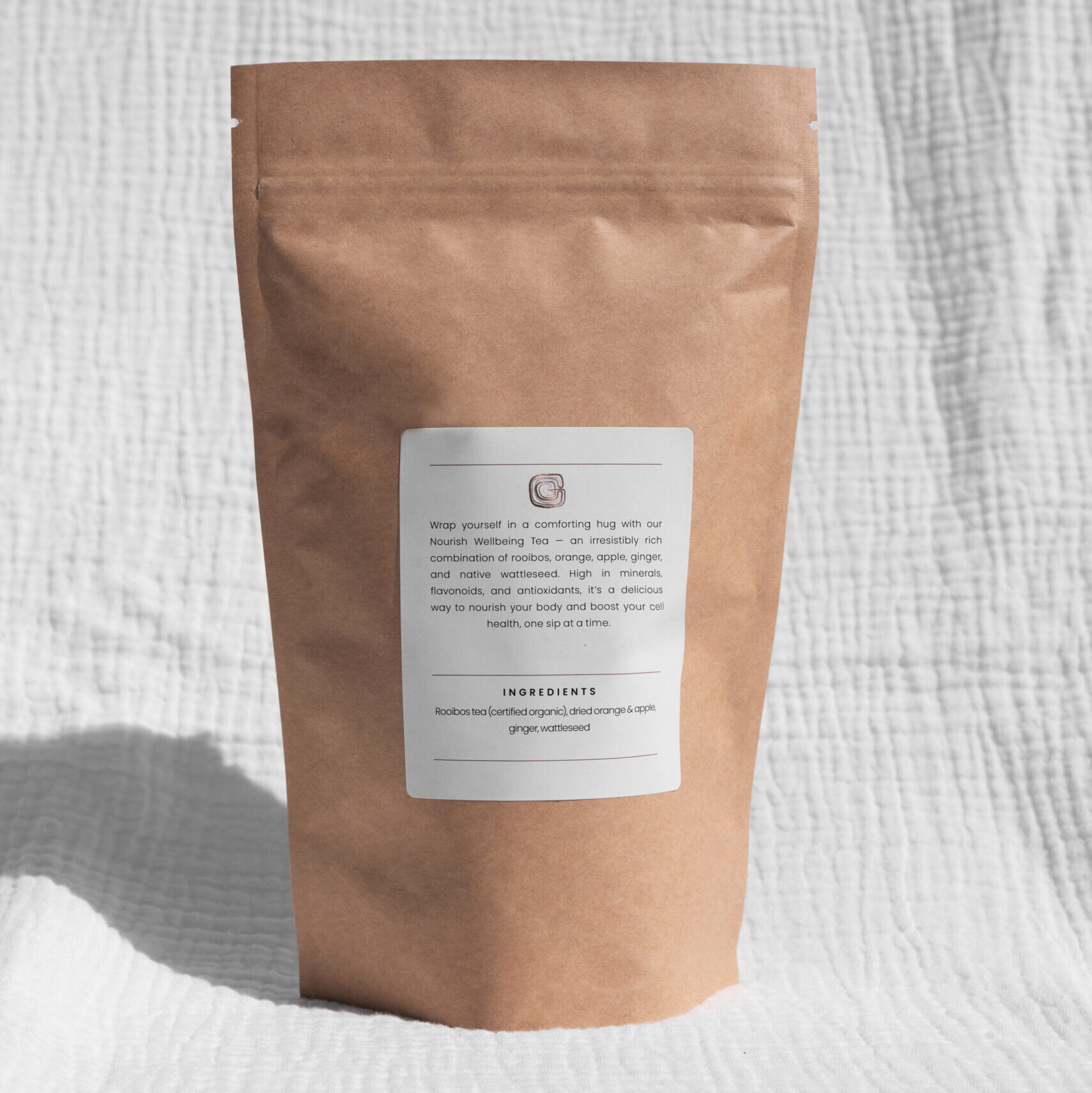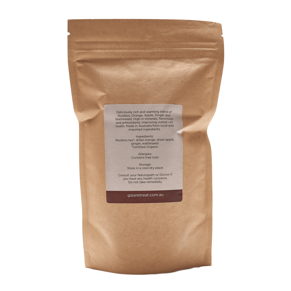 Wrap yourself in a comforting hug with our Nourish Wellbeing Tea — an irresistibly rich combination of rooibos, orange, apple, ginger, and native wattleseed. High in minerals, flavonoids, and antioxidants, it’s a delicious way to nourish your body and boost your cell health, one sip at a time.