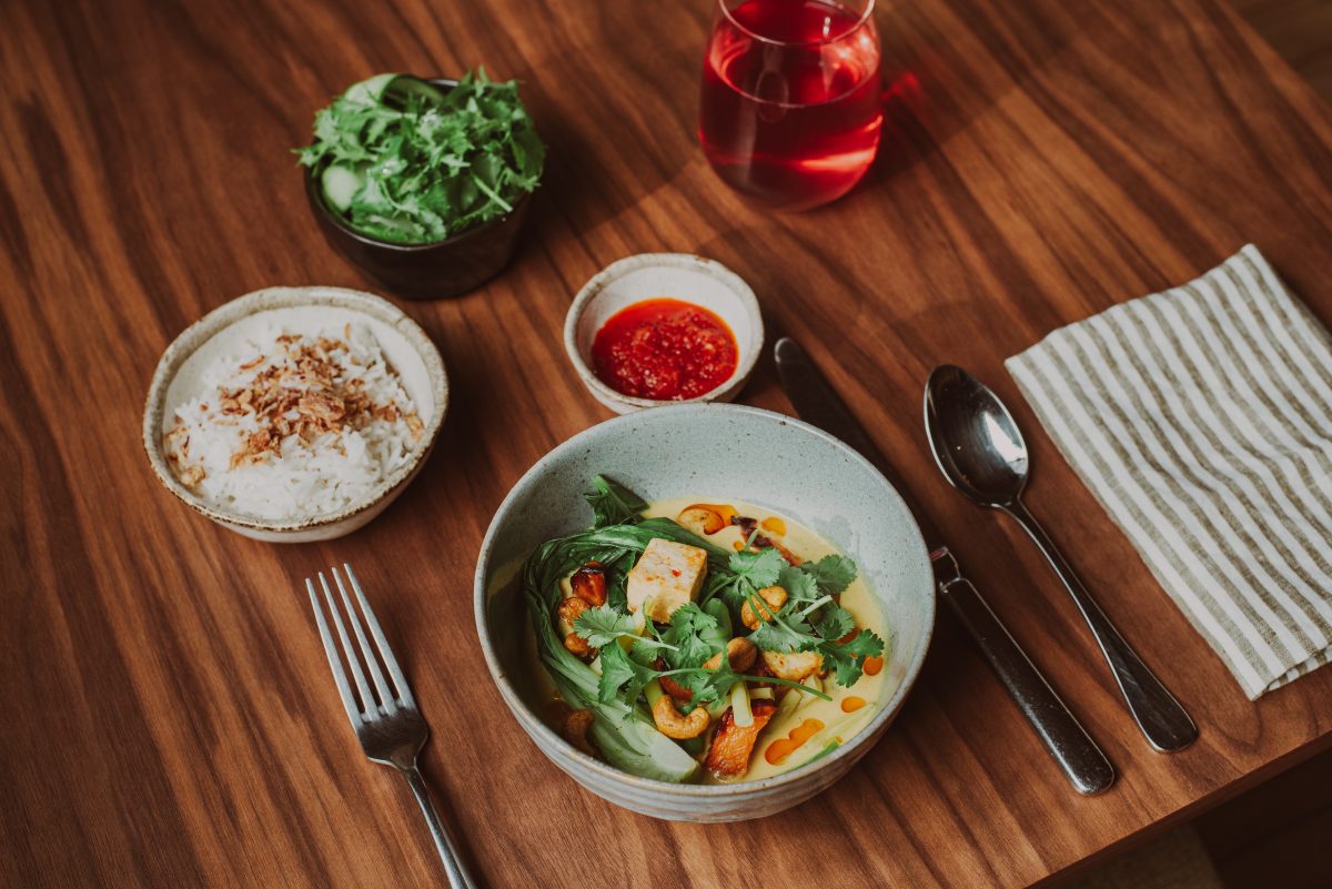 This curry is best served with prawns, eggplant, rice and green beans. However, it is also great with tofu to make it vegetarian. Additionally, a salad garnish made from green mango, bean sprouts, and coriander makes for a refreshing and light touch to the curry. Lastly, add a lime wedge, a spoonful of Gaia Thai Chilli Jam or Gaia Lemongrass Chilli Sambal and sprinkle with fried shallots and cashews.